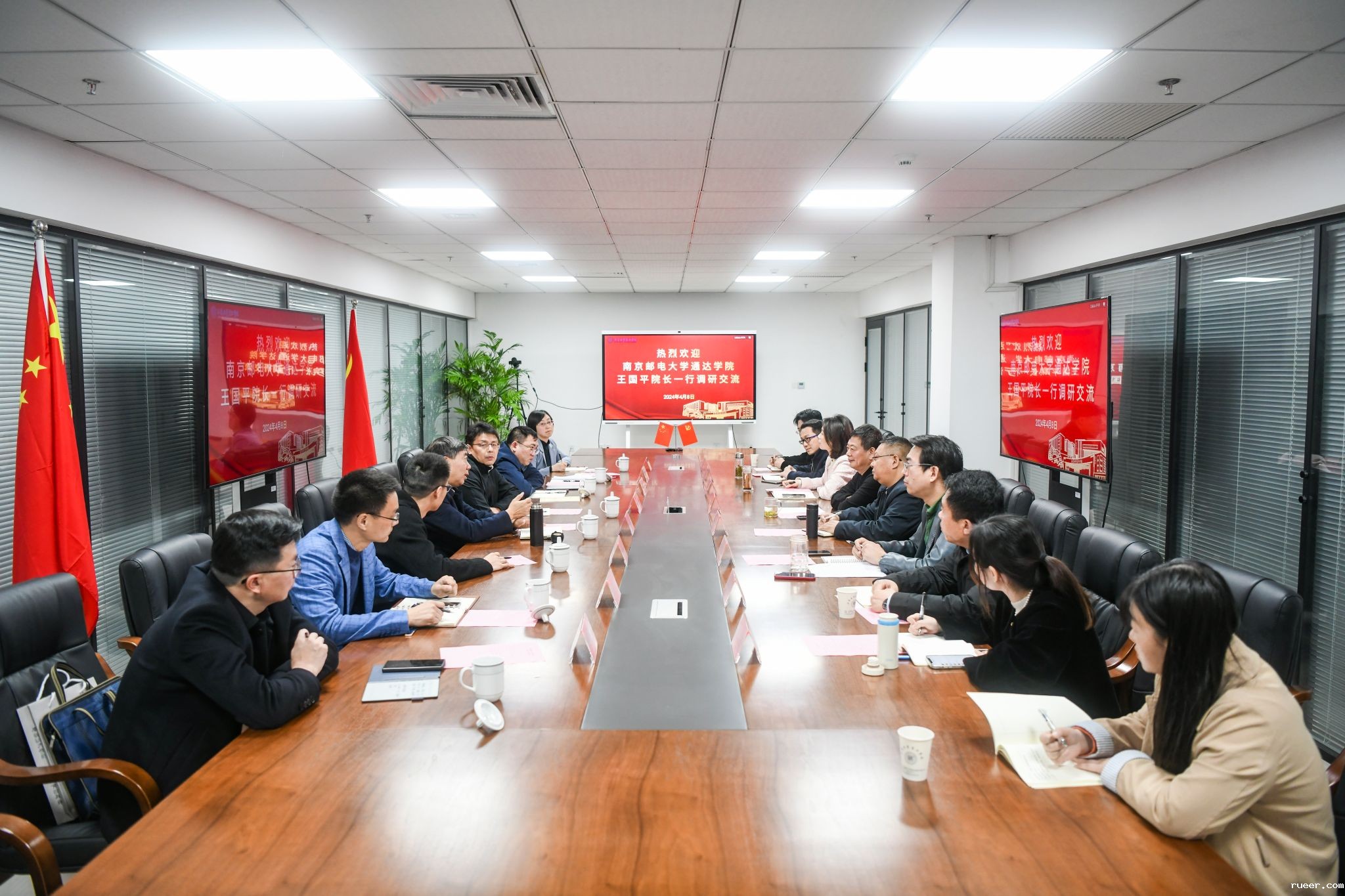 On the morning of April 8, Wang Guoping, Dean of Tongda College of Nanjing University of Posts and Telecommunications, and his delegation came to our institute for research and exchange. Cui Jingui, Du Daolin, Fan Yanhua, Jiang Hao and other leaders of our college and heads of relevant functional departments attended the exchange meeting. The meeting was presided over by Cui Jingui, Secretary of the Party Committee.