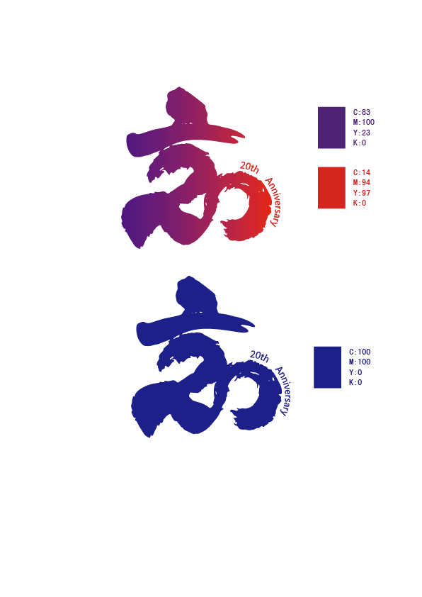 将京江的“京”字与阿拉伯数字“20”结合,整体以书法水墨形式呈现。利用书法艺术的灵动、韵律展现出京江学院20周年庆的欢乐感觉,整体造型又如同一个正在舞蹈的人物,为静态的logo增加了运动感。 右侧的英文标明20周年,体现20周年专属logo之意。