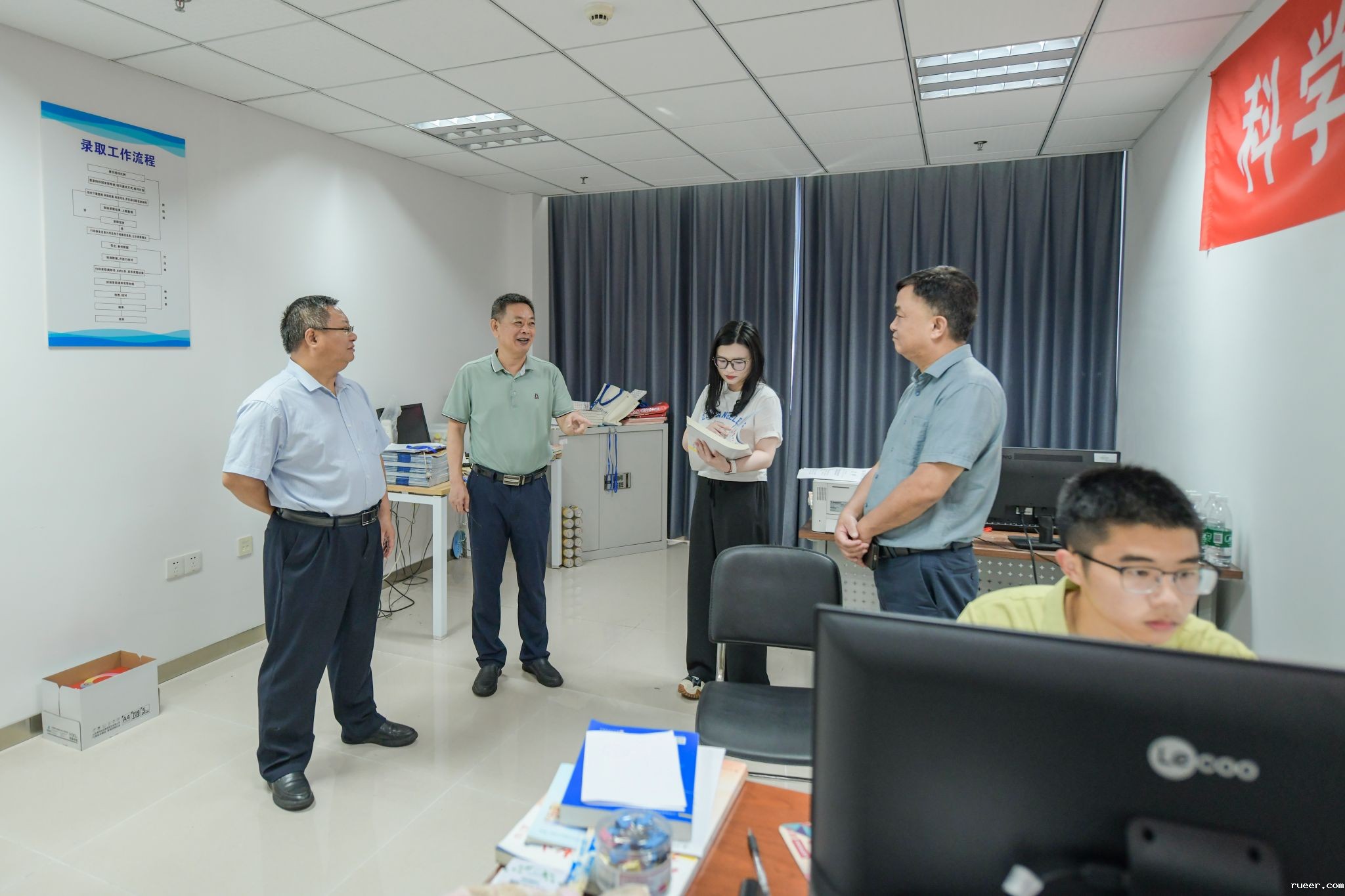 7月3日上午,京江学院党委书记崔金贵、院长杜道林带队到京江学院招生工作现场,检查招生工作,了解录取工作进展,亲切慰问招生录取工作人员。相关职能部门负责人参加了此次检查。