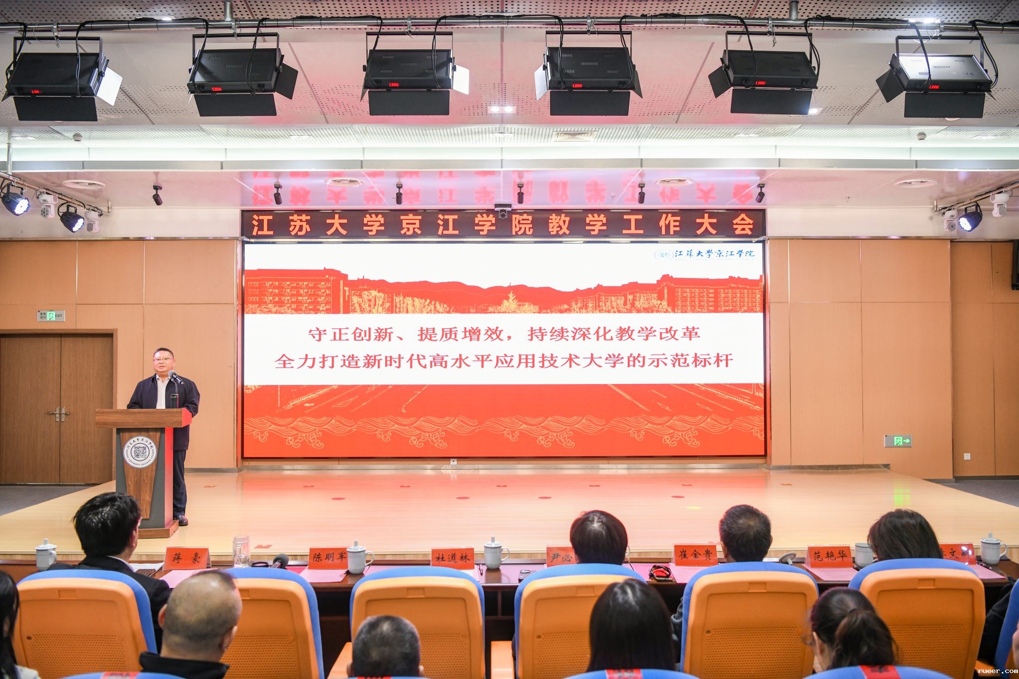 为贯彻党的二十届四中全会和全国教育大会精神,进一步落实立德树人根本任务,科学制定“十五五”教学工作规划,有效提高京江学院伟德体彩app水平和本科人才培养质量,10月29日,京江学院在学术交流中心第四报告厅隆重召开第一届教学工作大会。江苏大学教务处处长尹必峰、京江学院全体院领导出席会议,京江学院教学督导、全院教职工参加大会。大会由副院长陈明军主持。
