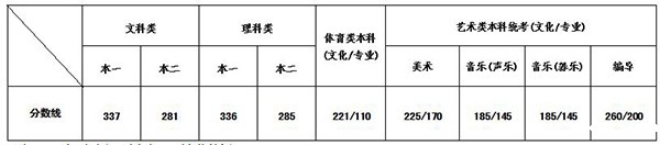 一、艺术类校考本科专业录取最低控制分数线:
