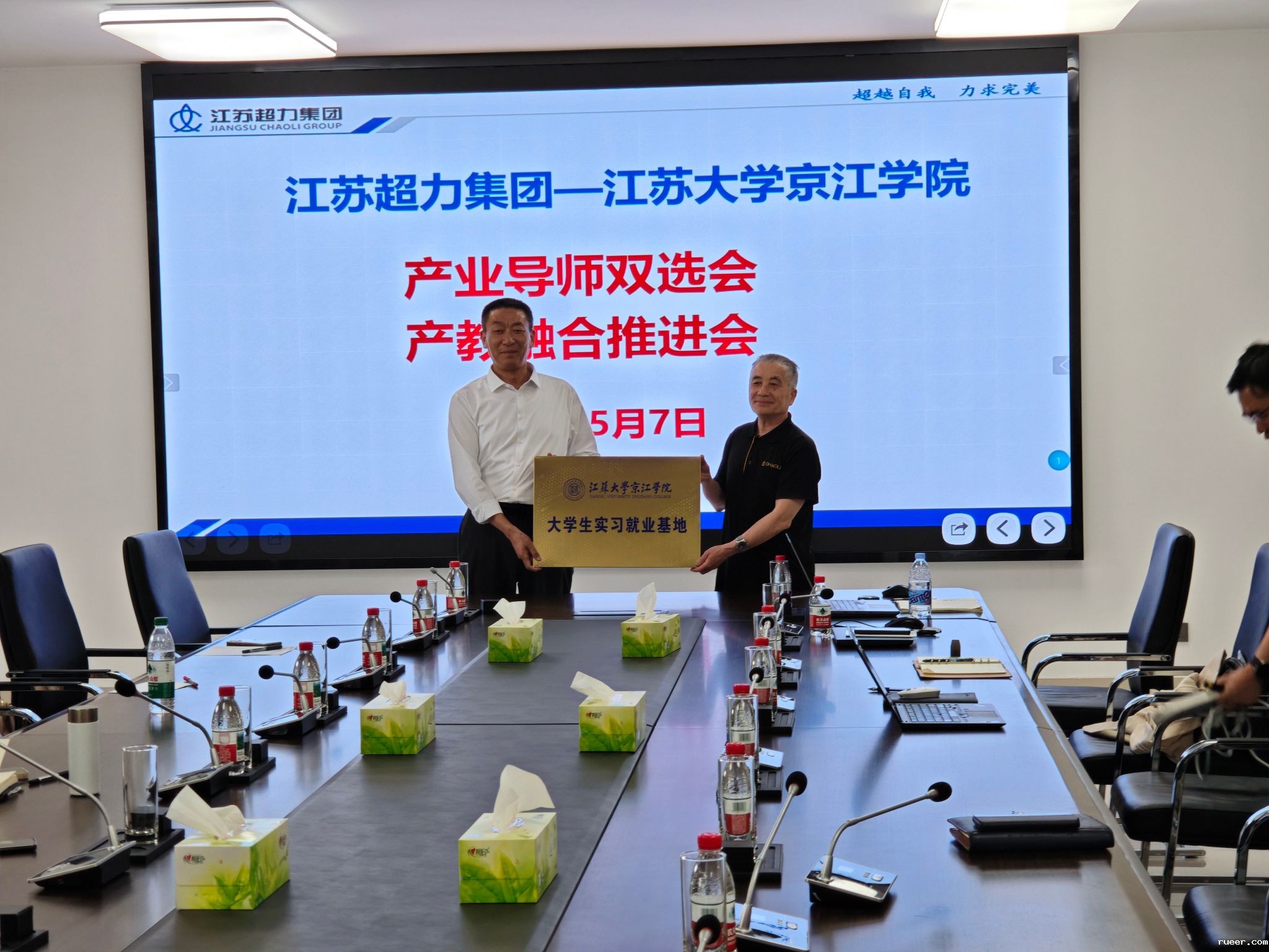 在与会嘉宾的共同见证下,双方举行了“实习就业基地”授牌仪式和产业导师签约仪式。宋昌才代表学院向超力集团授牌,聘请的三位产业导师分别与我院9位教师签约赴企业实践锻炼合作协议书。超力集团高度重视与高校的产学研合作,表示未来将依托基地建设,为学生提供智能制造、新能源技术等领域的实习岗位,同时期待通过联合技术攻关,推动校企合作向纵深发展。