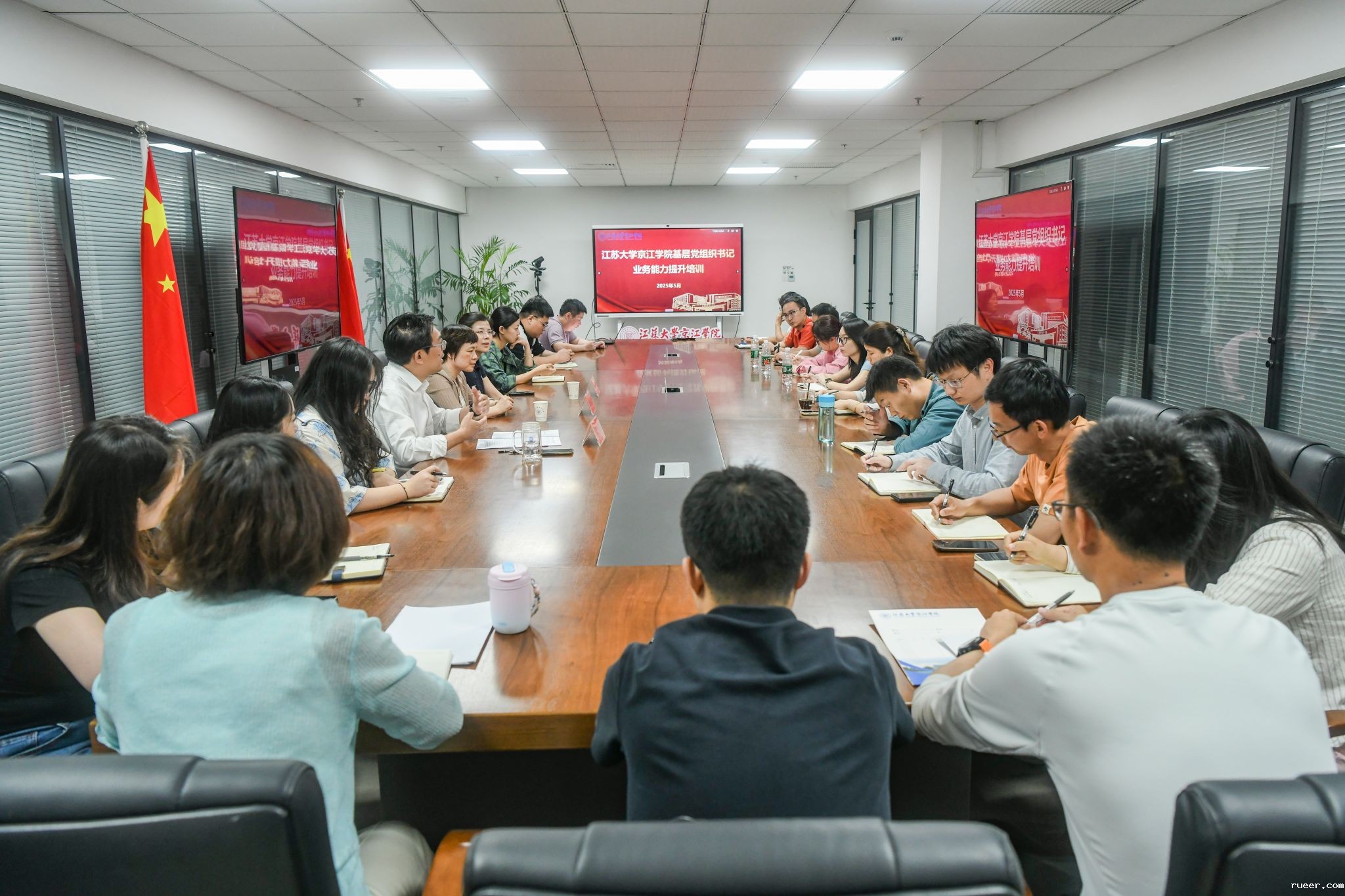 5月14日,京江学院在行政楼302会议室举办2025年基层党组织书记业务能力提升培训,邀请了江苏大学党委组织部正科级组织员关雪飞、孙月娟作专题讲座。培训由京江学院党委副书记、纪委书记蒋豪主持。全体党总支书记、党支部书记参加培训。