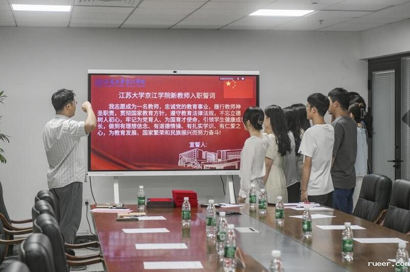 王智坤带领新教师入职宣誓,全体新教师签署、递交《师德师风承诺书》。