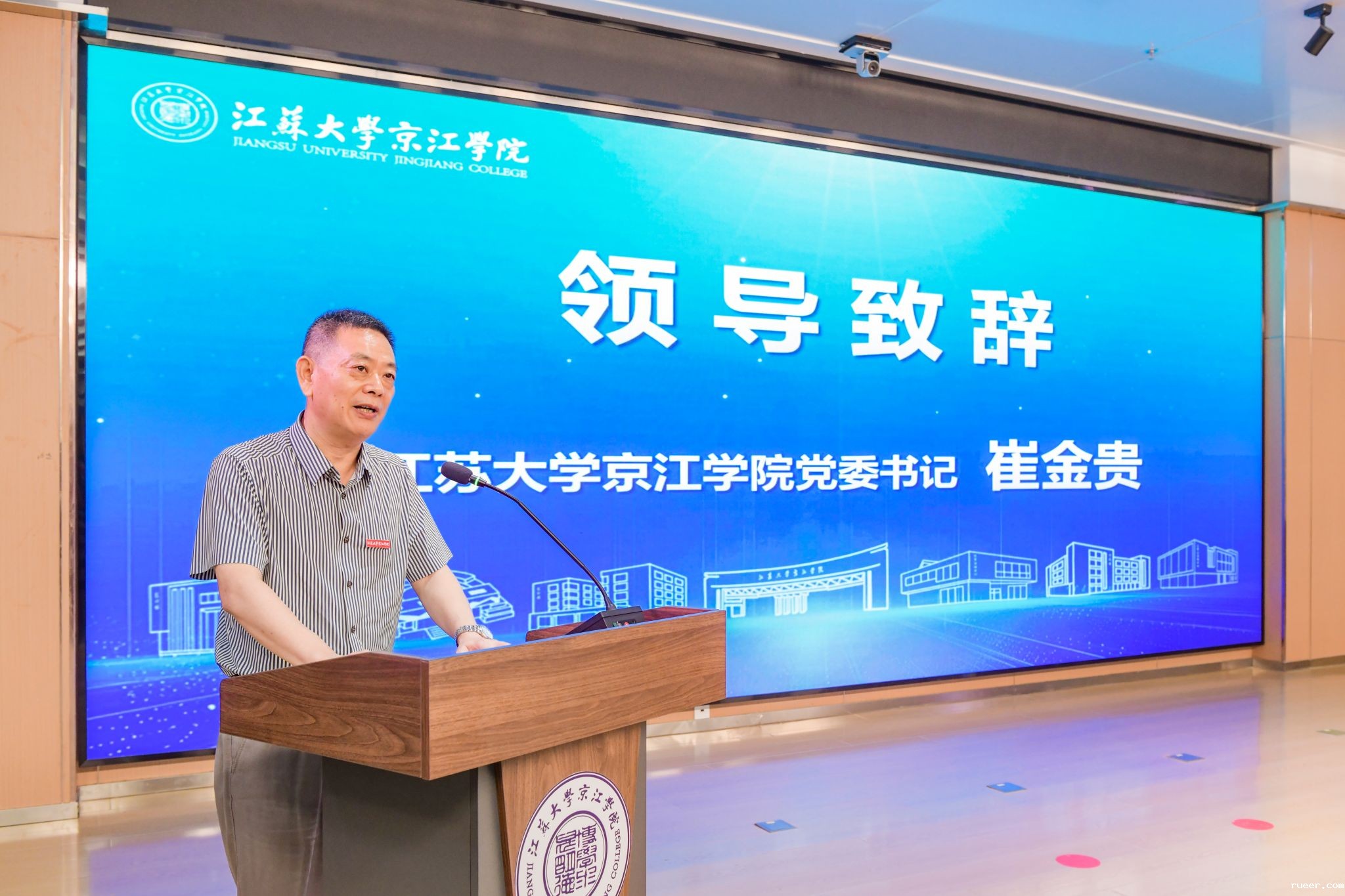 镇江市长山产教融合发展区管理办公室党委副书记、高投集团董事长高超,镇江市人力资源市场管理办公室主任赵蕾,河北省大名县人力资源和社会保障局副局长杜志勇、人才中心主任胡发文,扬州大学广陵学院院长凌云志、党政办公室主任王义全,江苏杰特思哲人才科技集团董事长高翔,行业企业代表,伟德官网手机版全体院领导、教师代表、学生代表出席大会。